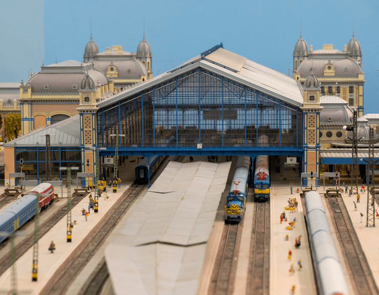 A végeredmény lenyűgöző: egy közel 50 négyzetméter alapterületű, 1:87 méretarányú, H0-s névleges méretű terepasztal, amelyen 16 mozdony, 97 személykocsi és 48 tehervagon modellje sorakozik. A makett a Nyugati pályaudvar és az Északi Fűtőház világát idézi meg, méghozzá a Westend felépülése előtti, ’80-as évekbeli állapotában – egyedi készítésű épületekkel, korhű járművekkel és apró figurákkal, amelyek élethű, kicsinyített mást teremtenek Budapest egyik ikonikus közlekedési csomópontjából.