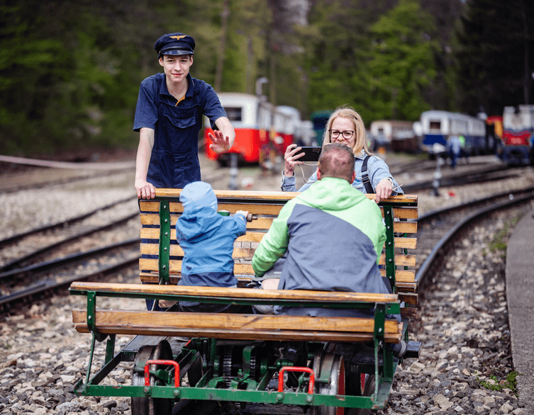 A gyerekek a szalonkocsiban felpróbálhatják a vasutas egyenruhát, és valódi felszerelésekkel játszhatják el a jegyvizsgáló szerepét – ez az élmény garantáltan emlékezetes marad.
