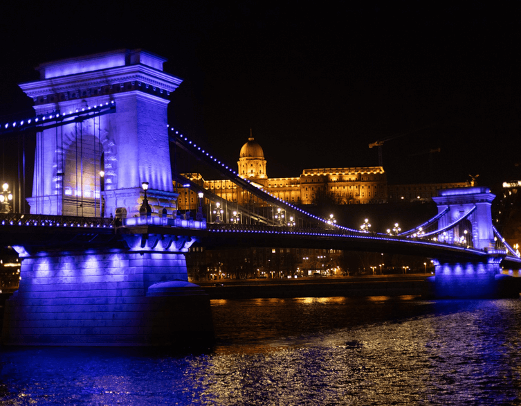 Nemcsak a vendéglátóhelyek, hanem Budapest ikonikus épületei is csatlakoznak a kezdeményezéshez. A hétvégén a Lánchíd, a Clark Hotel, a Budapesti Operettszínház, a Millenáris gombái, a Bálna és a Budapest Óriáskerék is kék díszkivilágítást kap, hogy felhívják a figyelmet az SNI családok ügyére.