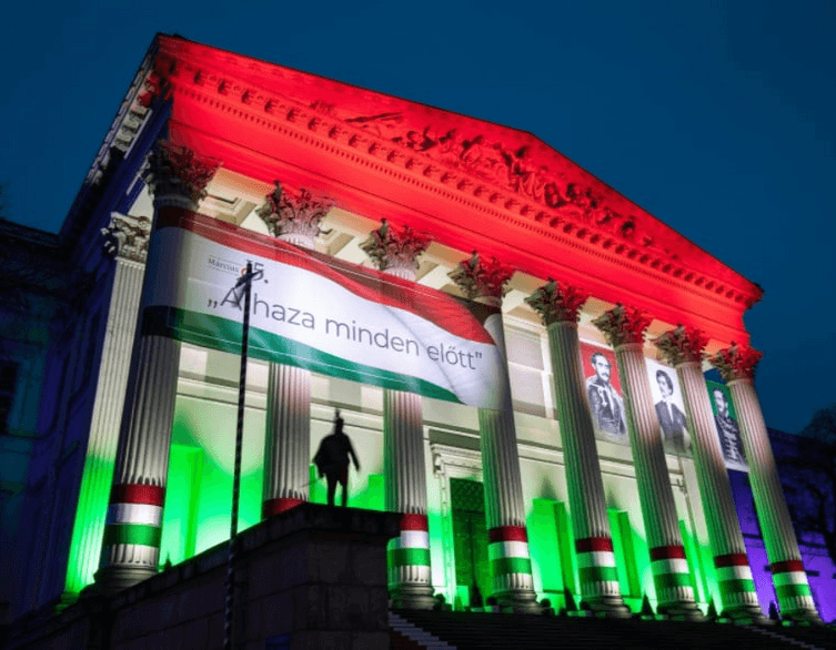 Mindkét este, március 14-én és 15-én is 17:30-tól 23:00-ig ünnepi fényfestés díszíti a múzeum homlokzatát. Ha napközben a programokon is részt veszel, érdemes maradni vagy este visszatérni, mert a látványos kivetítés önmagában is különleges élmény.